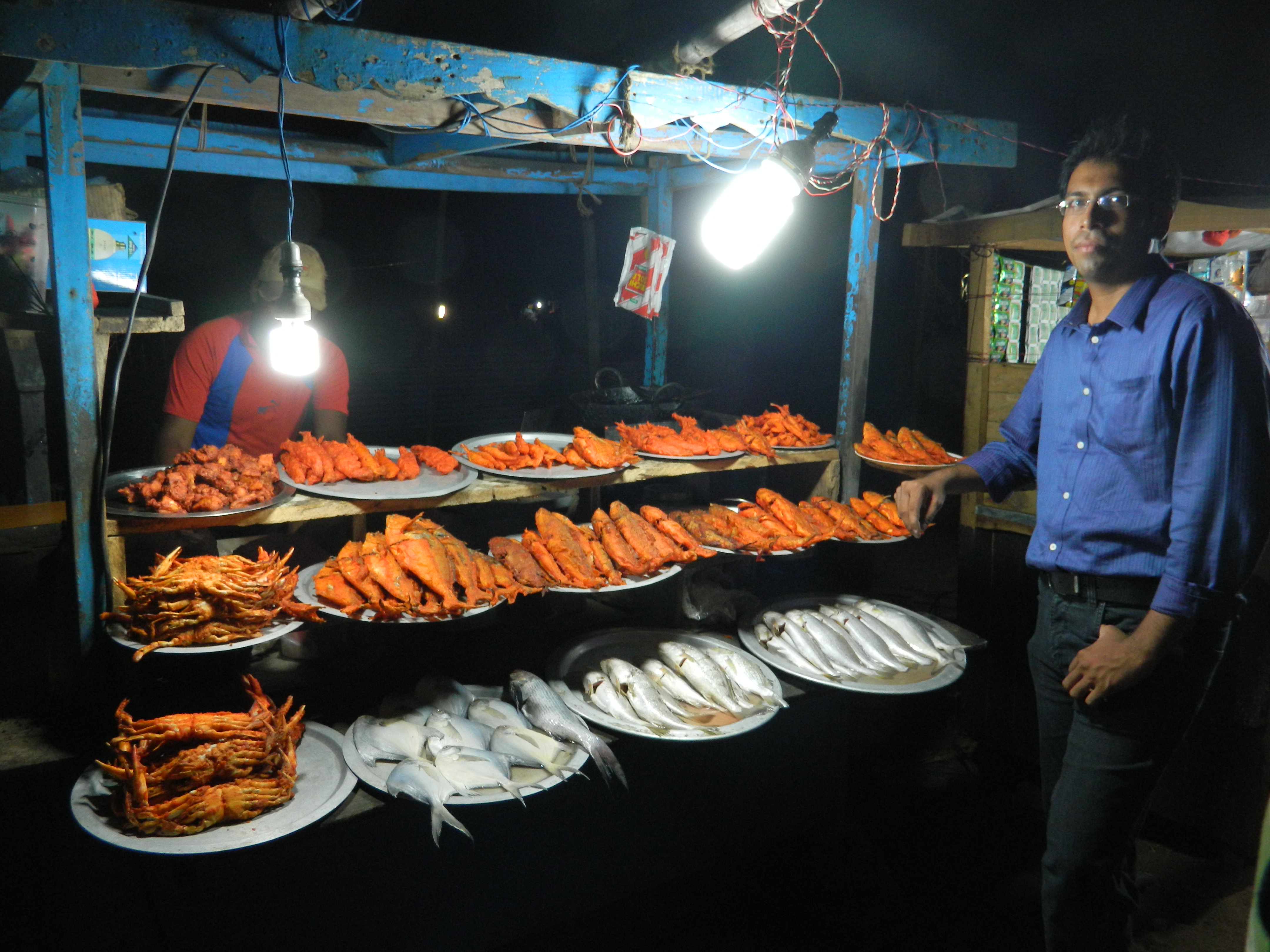 We passed by the V.I.P road where all the banks and government offices were located, hell, even a Domino’s/Pizza Hut 😛 This area bore a metro look. We left the cab and just strolled on the beach, wetting our feet, taking snaps and sipping on some tea. Then we just relaxed on the chairs for about 2hr which was a calming experience – one I had after quite a long time ! It was dark at 1730 itself !