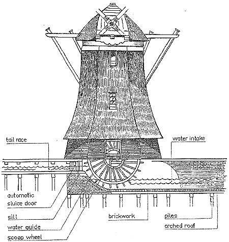 Let us refer to a diagram(Internet source: ‘Dutch Windmills’ by Frederick Stokhuyzen). So, the ‘water intake’ was the excess water which was pulled by the ‘scoop wheel'(powered by the wind) and passed via a channel further upstream where the next windmill repeated this task.