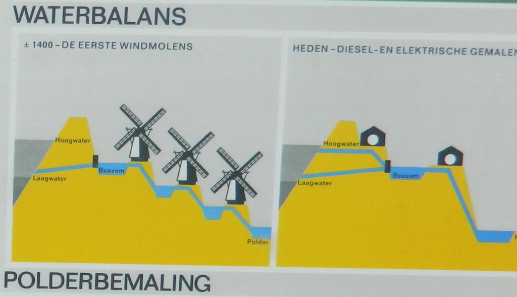 The below photo demonstrates how such series of windmills achieved the final objective. Note the polder being at a much lower level than the source of the water.