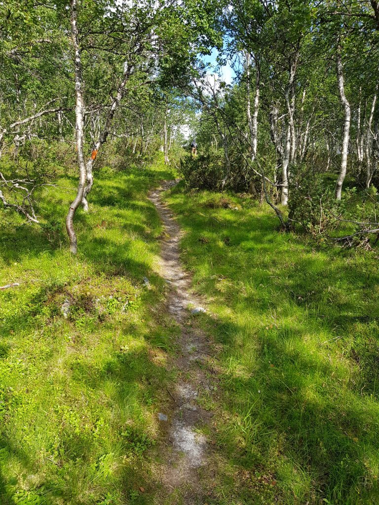 The route started with a gravel road which is used by the hikers, and the people living in the cottages ahead. There are aplenty villas for the next 1km or so. After Kesusjön, woods start appearing. After leaving behind few more houses, one is amidst the woods. The path has some mud and puddles at places, hence, wooden planks are placed to make walking easier. In the woods, the path is narrow, hence, the hikers often have to take turns letting the other side pass.