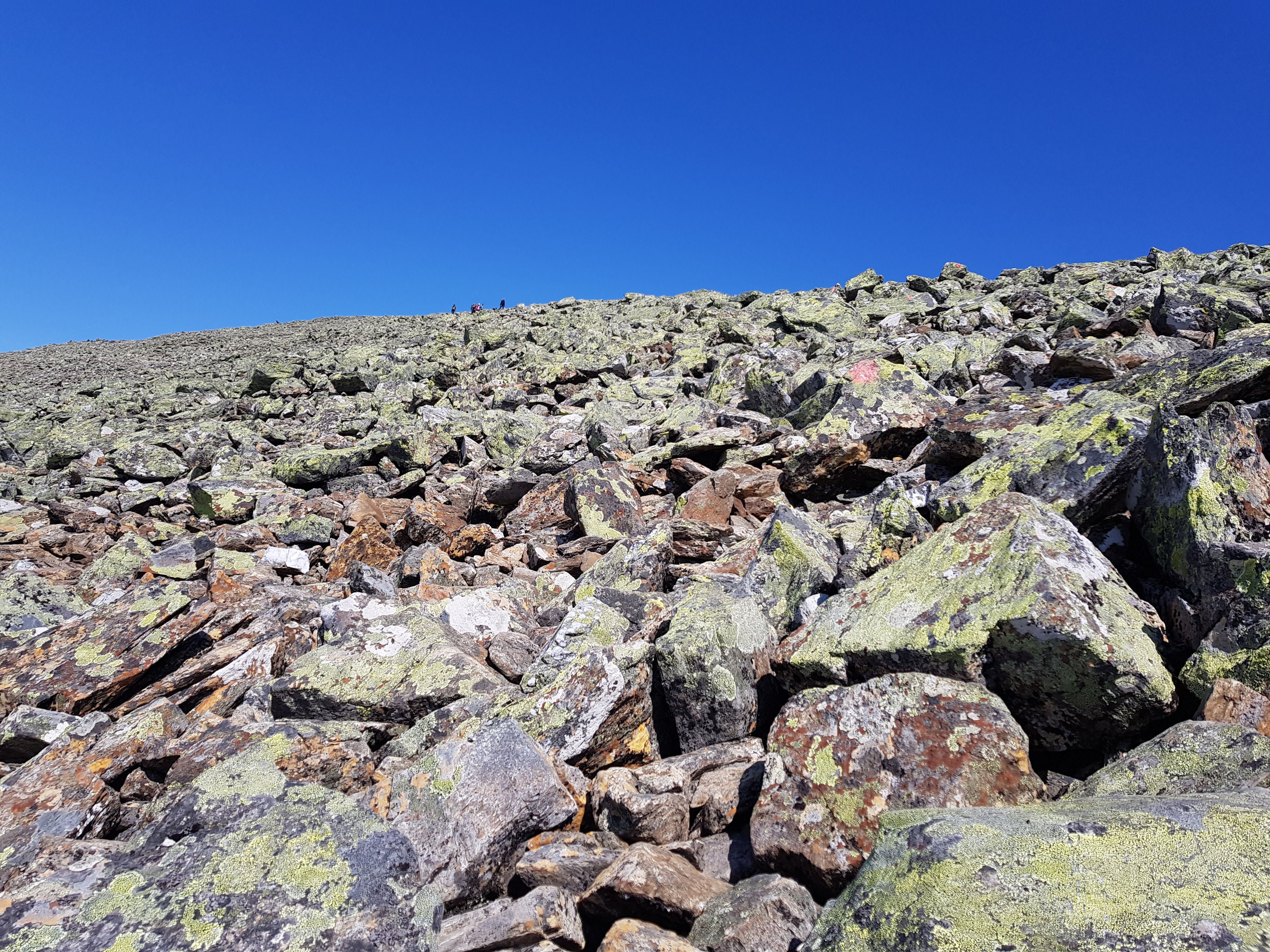 Even though we were ready to roll by 0800 hours, we started to walk around 0945. It was still windy and cloudy, but looked promising. Aplenty fellow hikers had the same plan – wait for the weather to improve, reach the summit, descend, and have some rest at the fjällstation, and walk back to Kläppen. Even those ladies(aged 55+) that I met yesterday had the same plan.