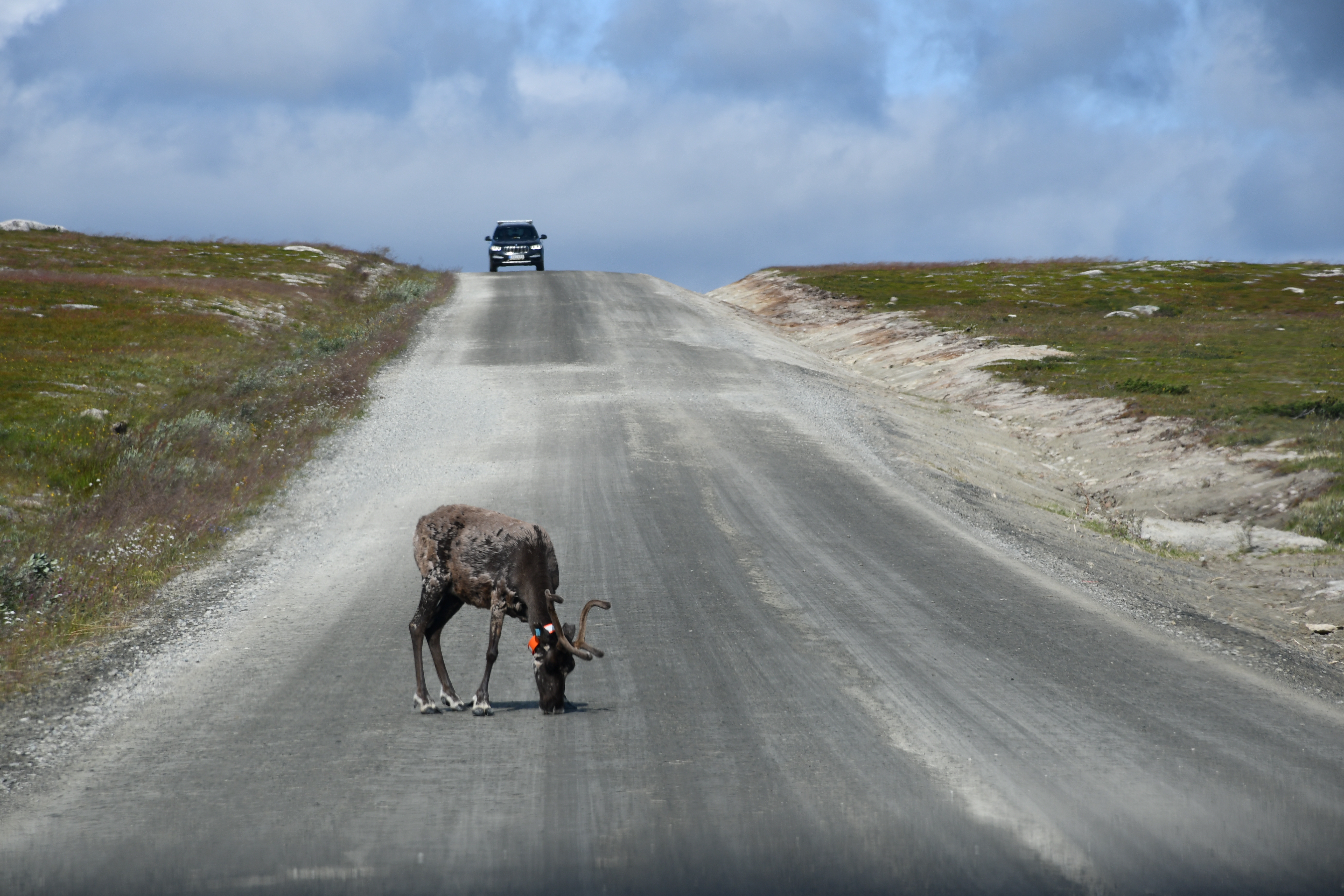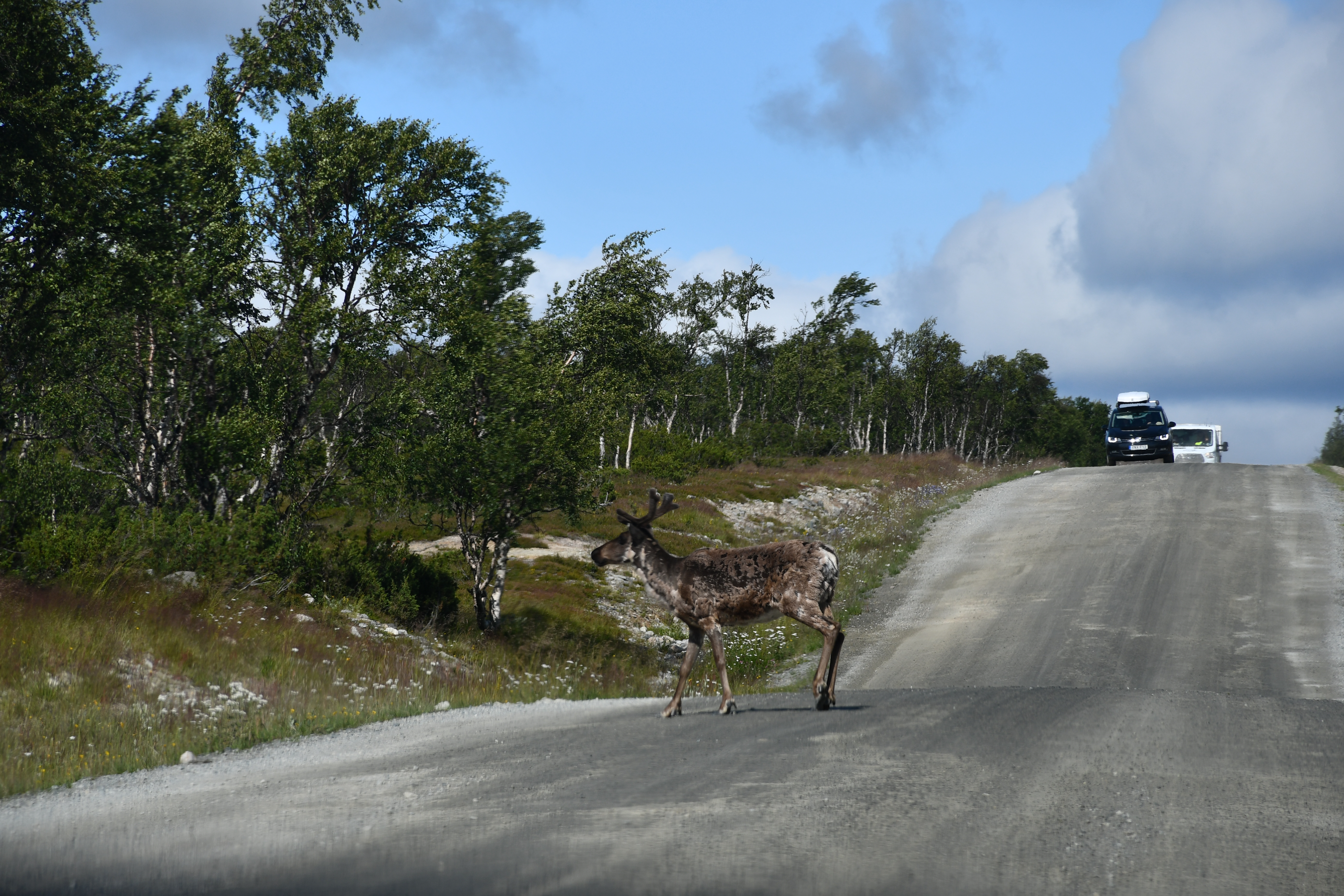 DJ reclined his seat and napped while I raced on the highway 84(Svenska: Riksväg 84). Just before Funäsdalen, DJ took the wheel, and I went doing what I like – compiling information 😀 . We soon took a narrow country road. Reindeers were crossing the roads in numbers equivalent to the pedestrians crossing the streets in Södertälje :P.