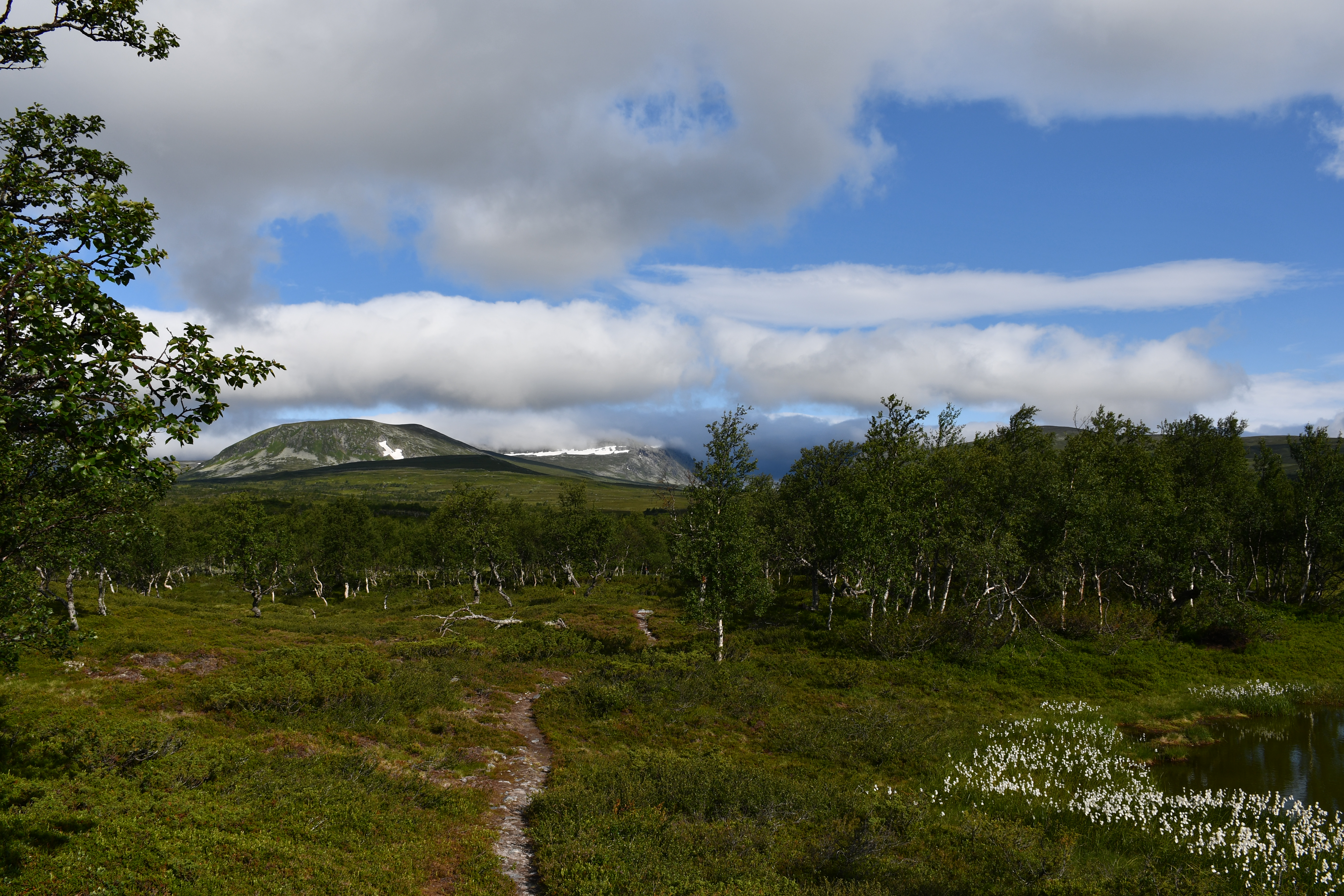 • It seems that staying on the right(Nörder-Storådörrfjället, the mountain on the right-hand side) provides an easier way but it’s an illusion. Both the mountains are surrounded by marshes, it takes a lot of energy to even reach the base of a mountain.