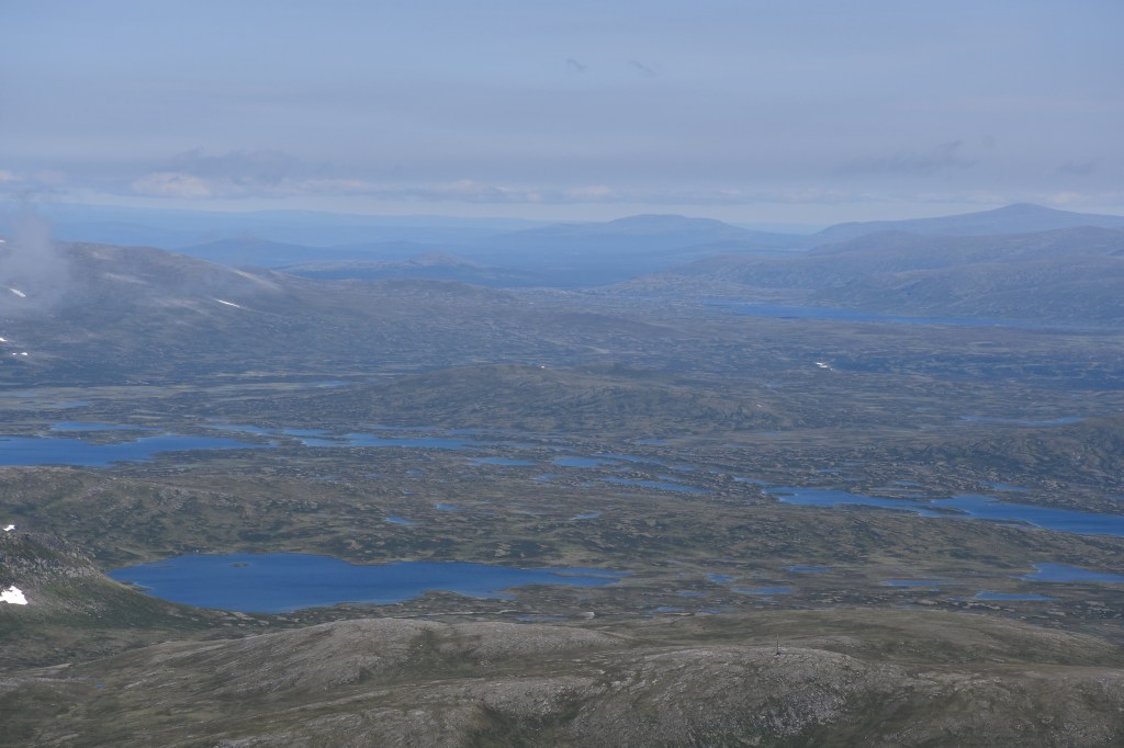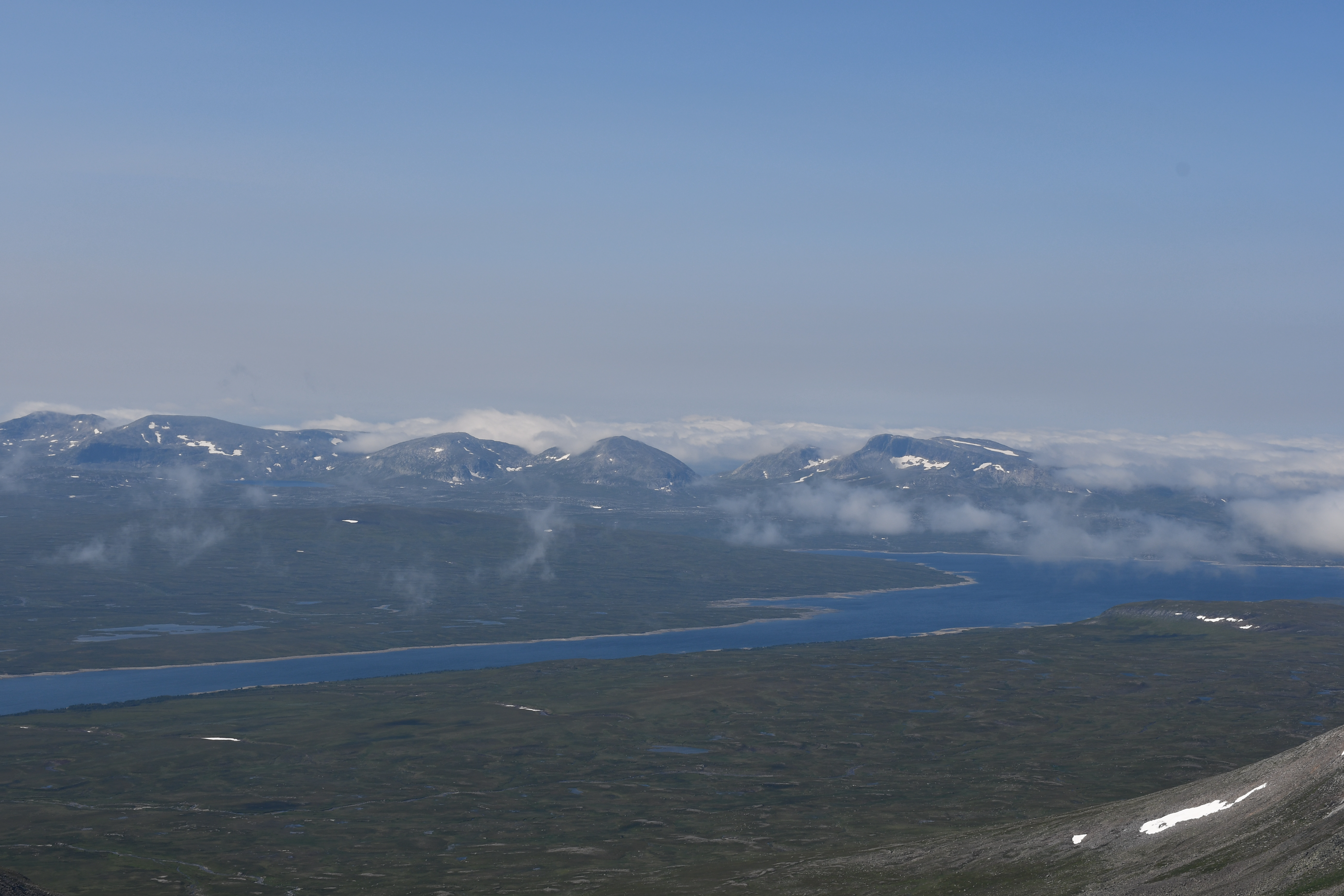 The southern side of the Norwegian part of the Scandinavian mountains can be seen in the photo. Sylsjön is an artificial lake created in the 1950s. It serves as a catchment area for the watercourse named Nean. Nean flows down the slopes where the flow is utilized to rotate hydroelectric turbines. It further feeds the Nidälven river that flows via Trondheim.It was built by an energy company in Trondheim after it received permission from Swedish authorities. Trondheim was earlier known as Nidaros. A pilgrim trail from Sweden ended here, and when the dam was built, a part of this trail was submerged in the lake.