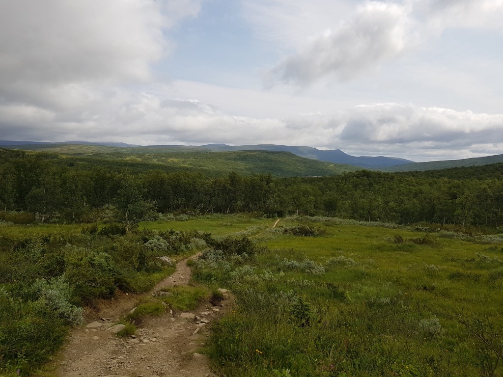 We hit the road again at 1630 hours. DJ soon disappeared from my sight, and I continued to walk like an old lama. Hikers, 99% of them were families, were flocking to towards the hostel. I finally came across several kids(aged 8 – 14) riding their terrain bikes, and accompanied by their parents. I chatted with a couple who were riding on their respective bikes, along with their 8-year old son. I asked the father whether the kid is tired. He exclaimed “We have been going for 5 hours, and he is not a bit tired. He is rather enjoying it”. The mother, a bit sarcastically, added “He normally complains even for a 1km walk but today, he is enjoying it”. Some fitness freak ‘locals'(probably, staying in Kläppen) were running to and fro on the trail. The winds had fallen, so there wasn’t any hindrance. My speed was around 4km per hour, so I hoped to reach by 1845. By the time the woods showed up again, my toes and hoofs were giving up. I tried to rest my butt in the woods but hundreds of mosquitoes swarmed, and started to bite. I dragged my feet out of the woods. I reached Kesusjön around 1845. I decided to rest a bit. I ate the last energy bar, and watched the calm waters of the lake. That is when I received a call from DJ saying that he had reached the parking.