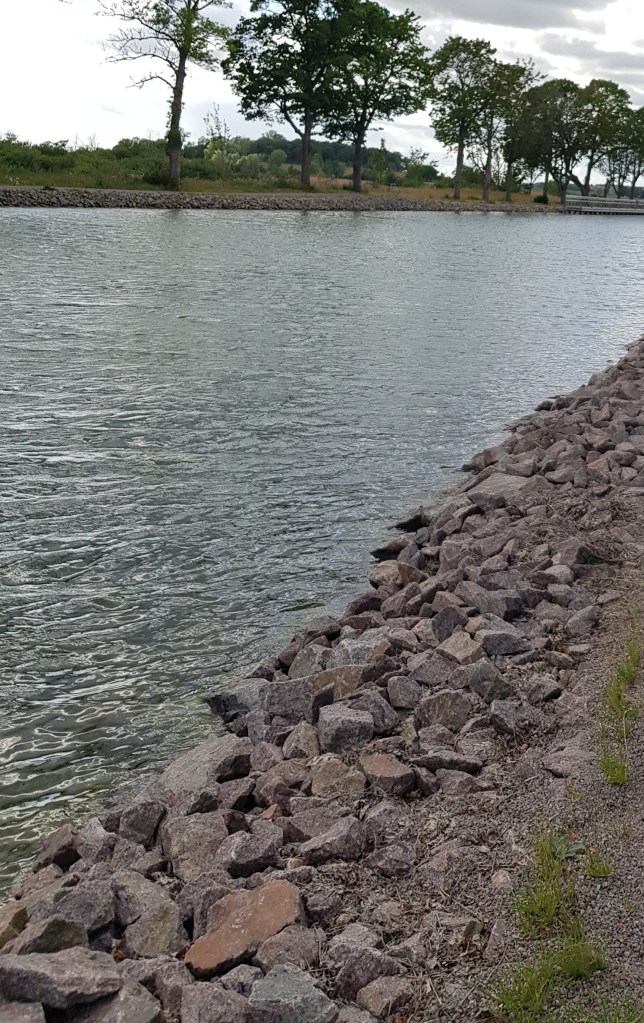 The bank revetments are stone covers laid out on both sides of the canal. During the 18th and early 19th centuries, these were built to keep the canal banks intact and protect against various types of erosion from waves and other wear along the water lines. These are now wearing out because of larger waves caused by larger boats and propellers, things that didn’t exist when the canals were built and all boats were pulled by horses and oxen.