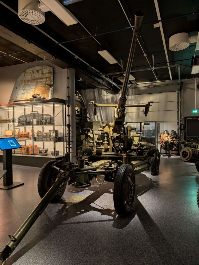 The Bofors L/60 is a towed anti-aircraft gun on a four wheel mount. There are four jacks, of which two on outriggers, to provide a stable firing platform. The gun is fitted on a open mount, with later mounts featuring a gun shield. Firing is carried out by two seated operator, plus one to three people loading the gun.