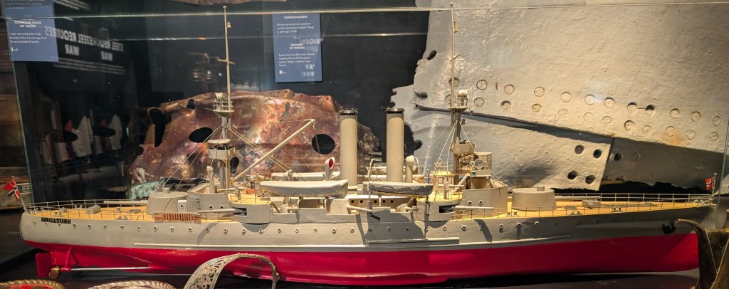 Narvik’s coastal defence consisted of only two old warships named ‘Eidsvold‘, and ‘Norge’. These were built in 1899, and were far too obsolete to fight the German destroyers in 1940. The Germans tried hard to negotiate a peaceful surrender to which the Norwegians paid no heed. As soon as Eidsvold fired shots, the Germans fired 4 torpedoes, out of which 2 hit Eidsvold, breaking it into two(sunk around 0437). It was the ship’s first, and last battle. Its sister ship, Norge, met a similar fate(sunk around 0500).