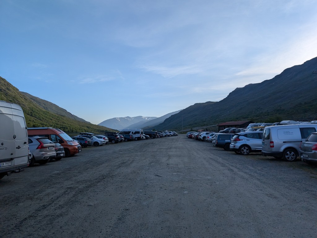 I reached the Juvasshytta parking around 0950, after ascending a bit scary serpentine road. It had no side/safety barriers on the sides where the vehicle was exposed to the cliffs.