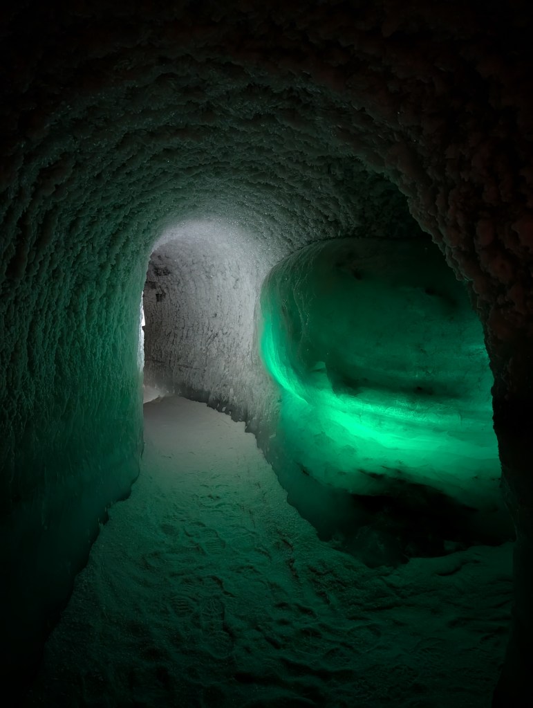 Hand-carved, ‘permanent’ ice cave.