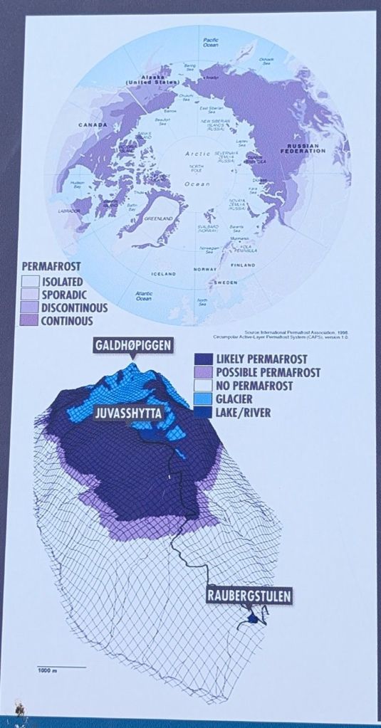 - Juvflye has permafrost, and there are several boreholes in the area where changes in the ground temperature are measured.
