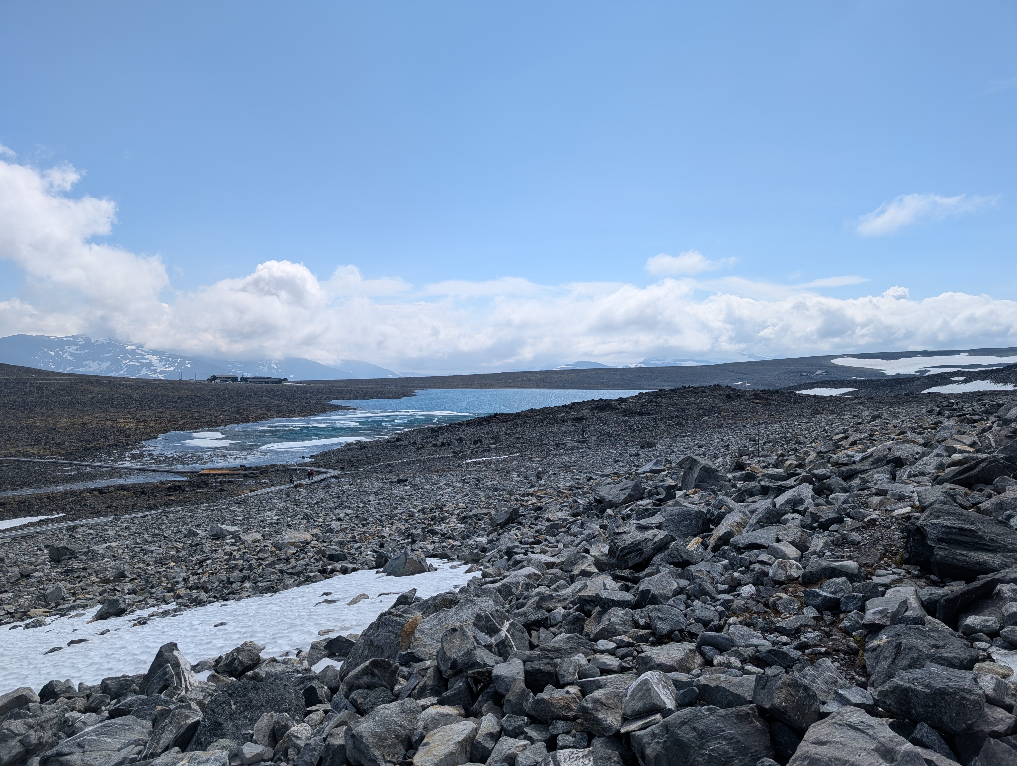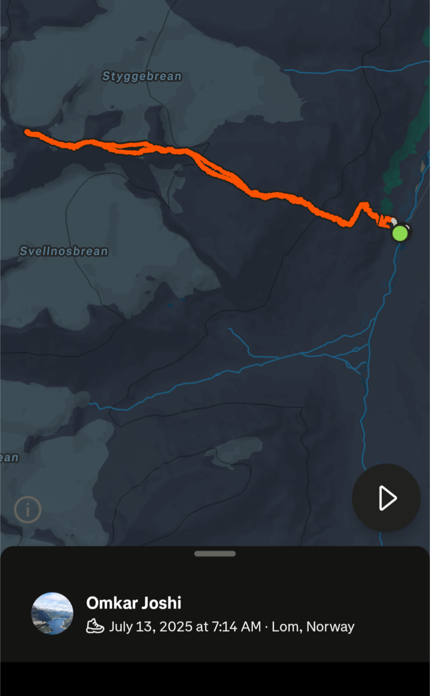 I left from the Juvasshytta parking lot around 1330. I partially recorded the descending drive using my phone. The video does include my blabbering, so bear with me :D. It was a memorable drive because of the serpentine road, cliffs, and the enthralling mountains.