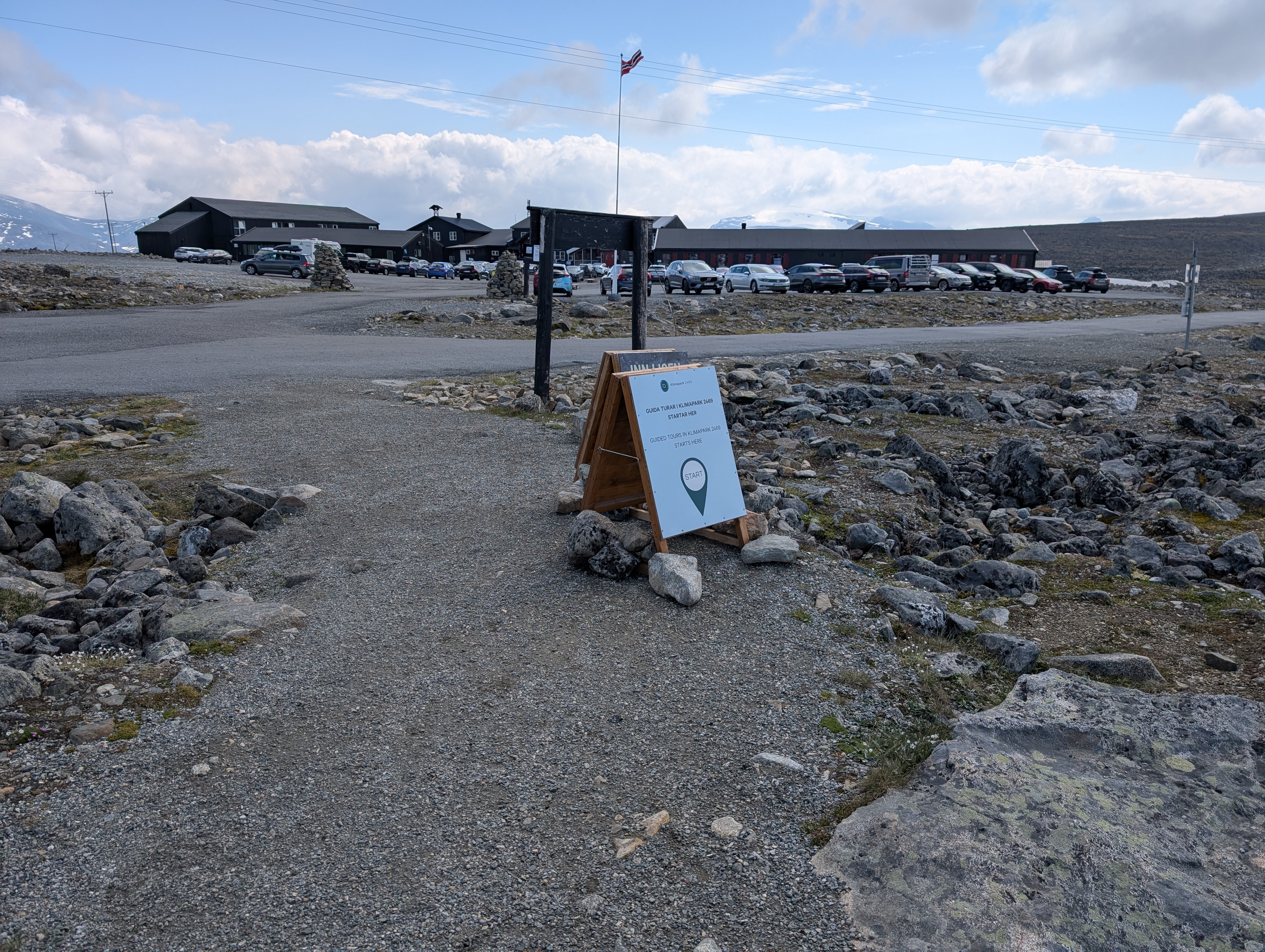I reached the Juvasshytta parking around 0950, after ascending a bit scary serpentine road. It had no side/safety barriers on the sides where the vehicle was exposed to the cliffs.